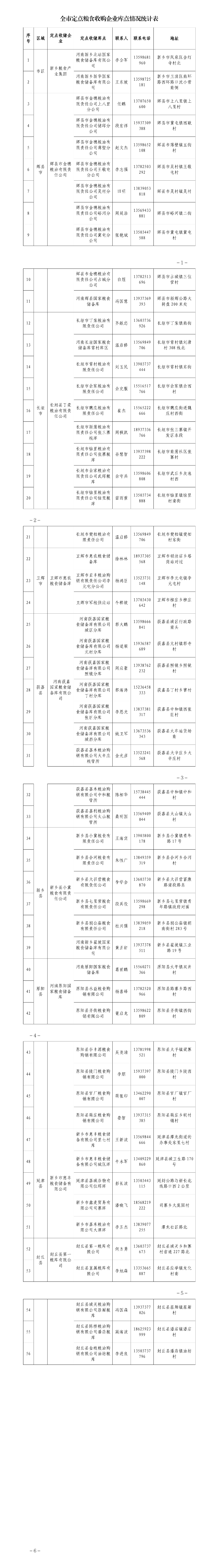 根据省、市政府关于切实做好夏粮收购工作的安排部署,针对今年小麦收获期间出现程度不同降雨天气受损情况,为切实保护农民种粮收益,坚持“方便农民售粮、有利于粮食安全储存、有利于处置监管”,按照“一县一企、一企多点”原则,在全市国有粮食收储企业选择确定了56个库点定点收购农民受损小麦,各收储库点将在收购场所张榜公布收购品种、价格、质量标准、结算方式、服务措施等相关信息,组织引导辖区内酒精、饲料、贸易商、粮食经纪人等各类市场收购主体参与市场化收购,加强粮食市场监管,规范企业收购行为,维护收购市场秩序,保障夏粮收购平稳有序进行。具体收购库点名单公示如下: