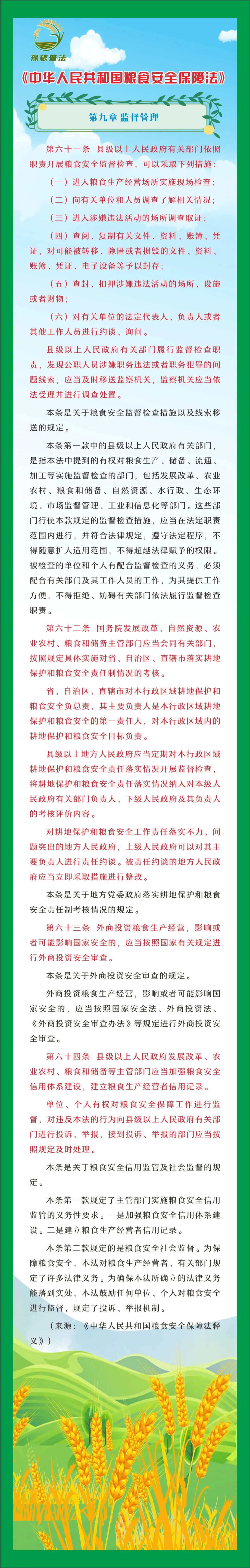 豫粮普法(26)丨《中华人民共和国粮食安全保障法》第九章 监督管理:粮食安全监督检查措施以及线索移送、粮食安全信用监管及