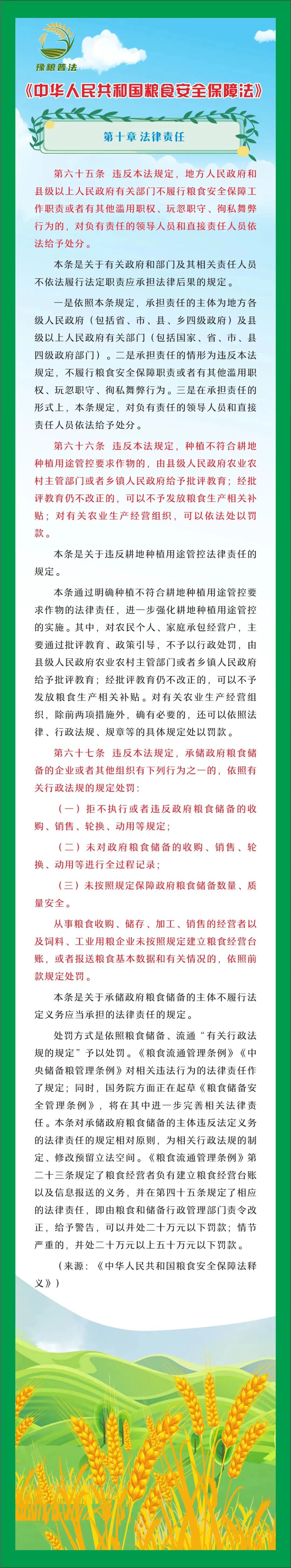豫粮普法(27)丨《中华人民共和国粮食安全保障法》第十章法律责任:有关政府和部门及其相关责任人员不依法履
