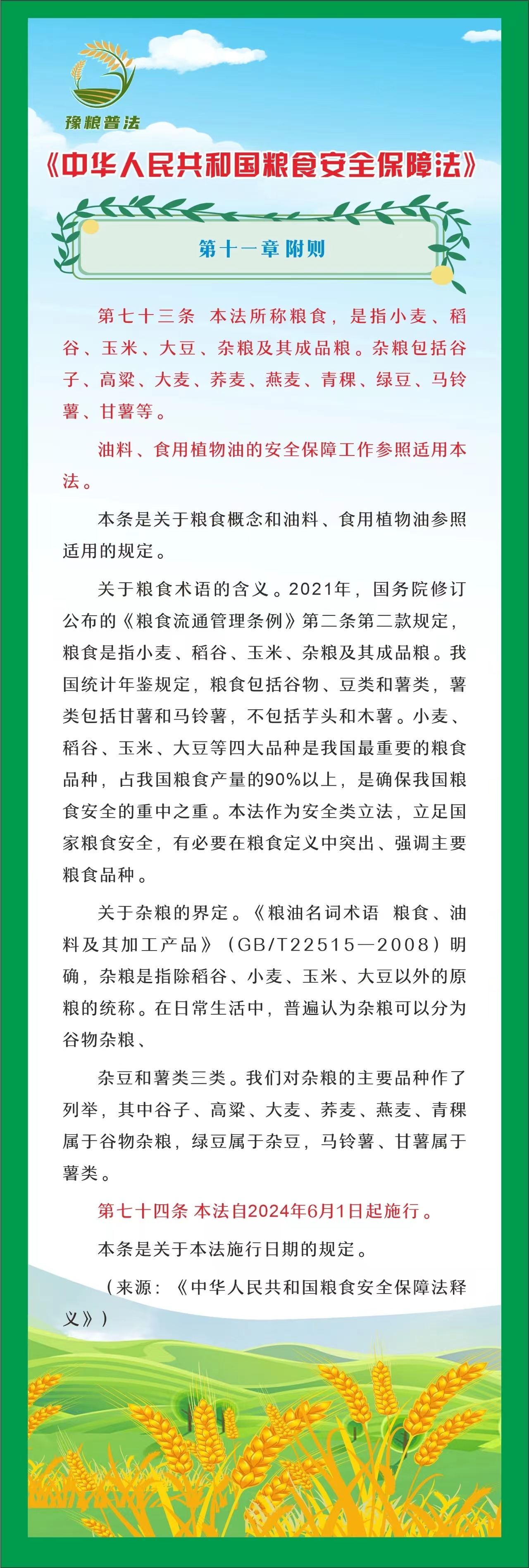 豫粮普法(30)丨《中华人民共和国粮食安全保障法》第十一章 附则:粮食概念和油料、食用植物油参照适用、本法