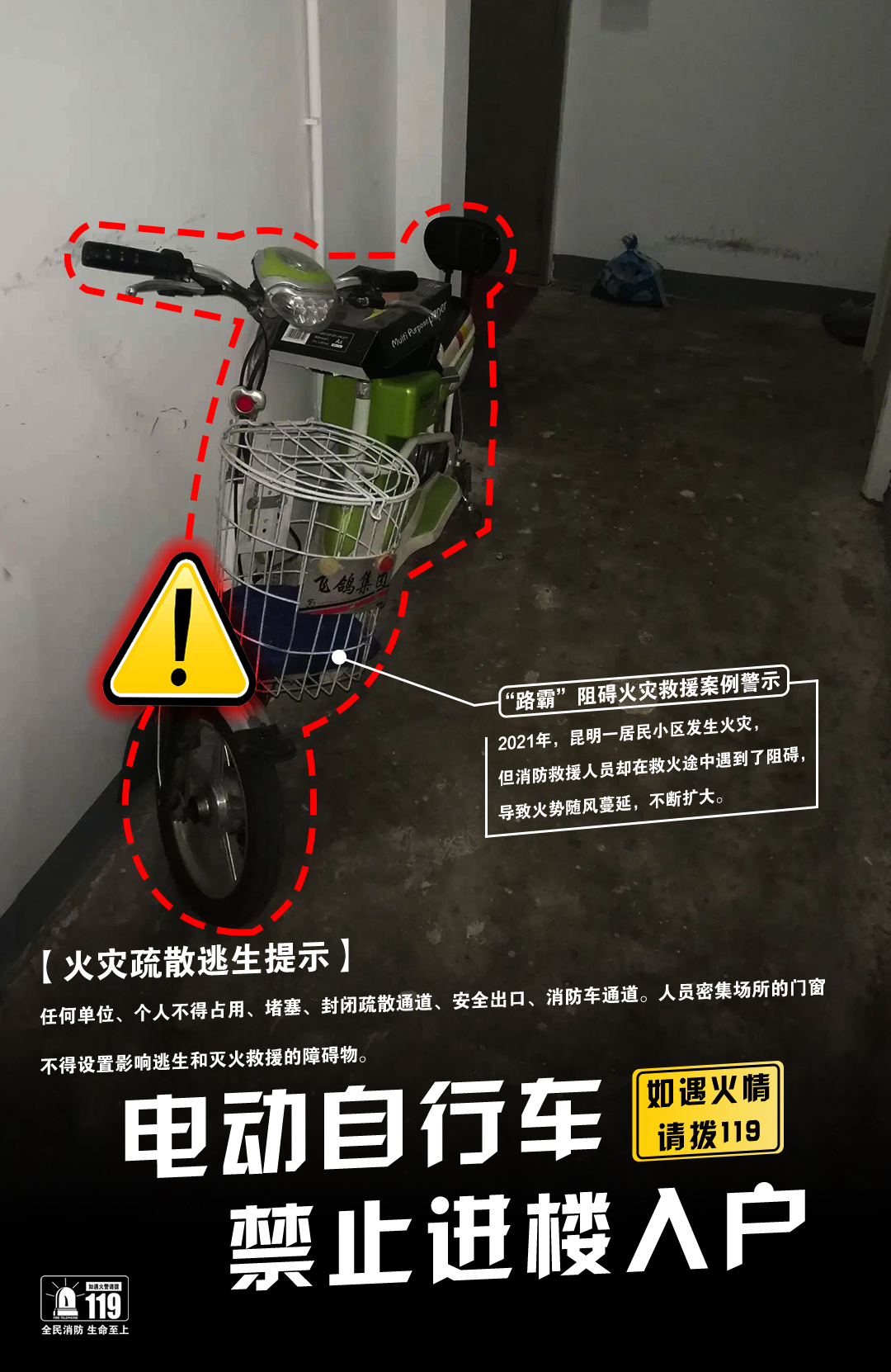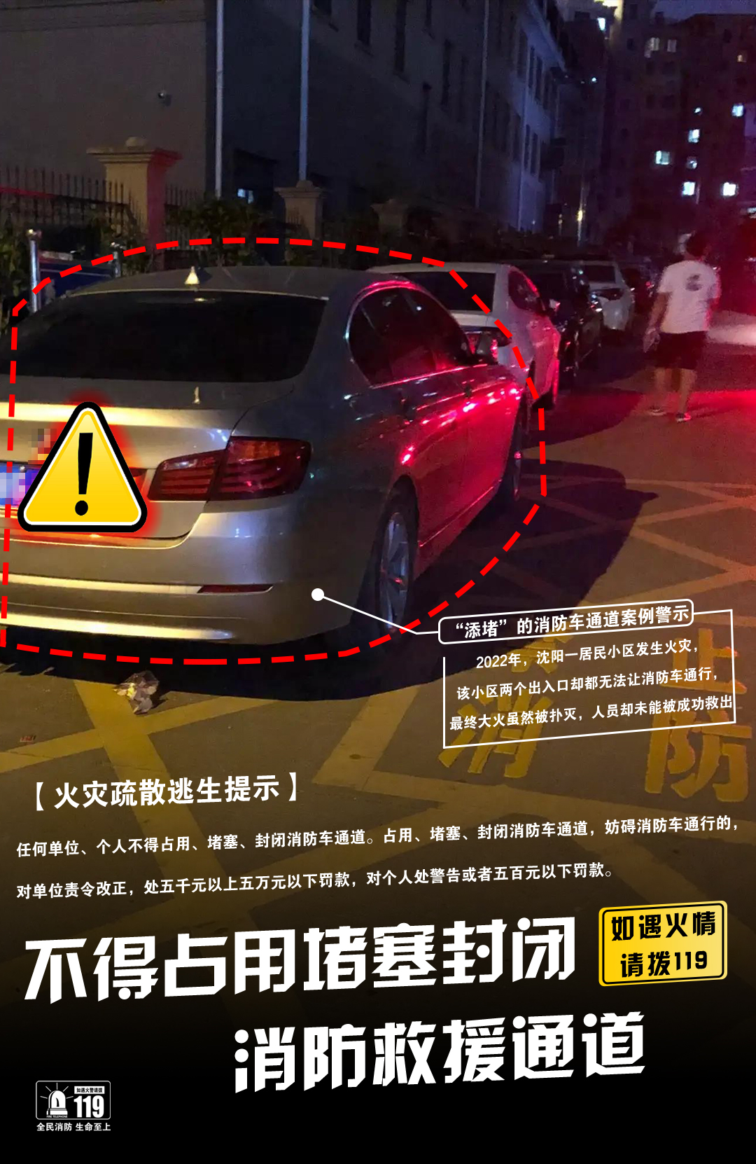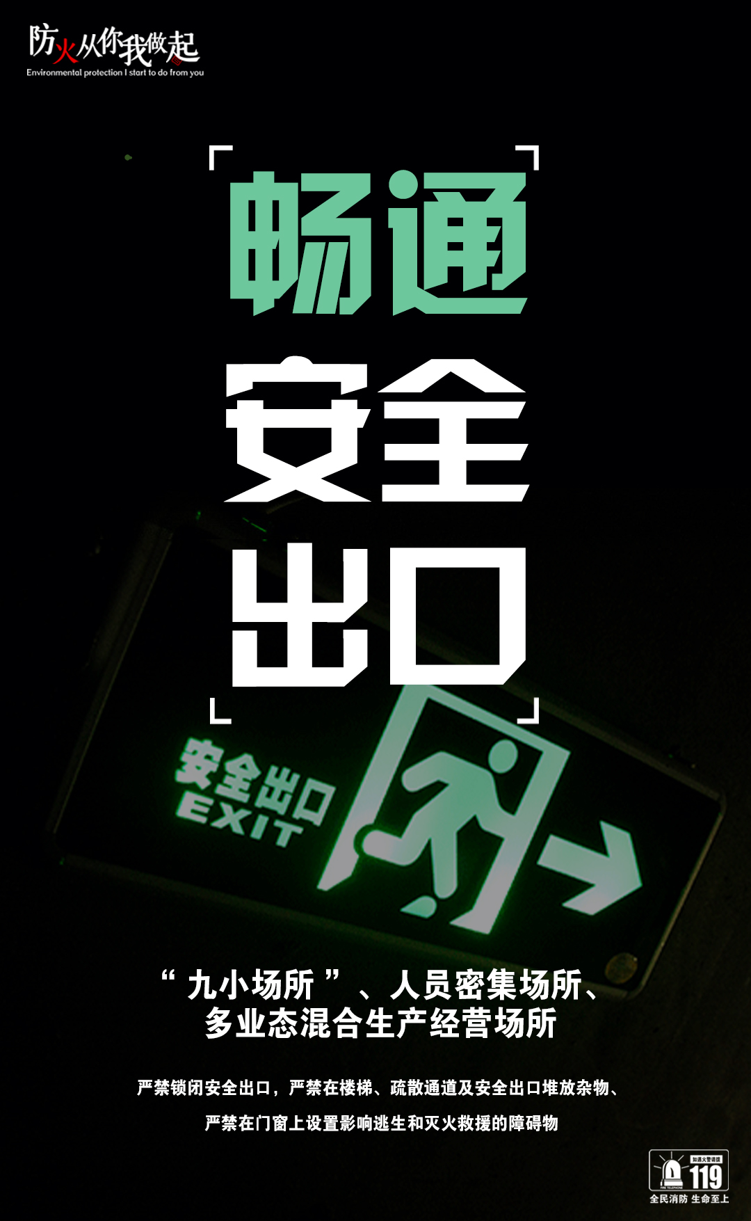 防火从你我做起,请勿遮挡消防通道,畅通安全出口!