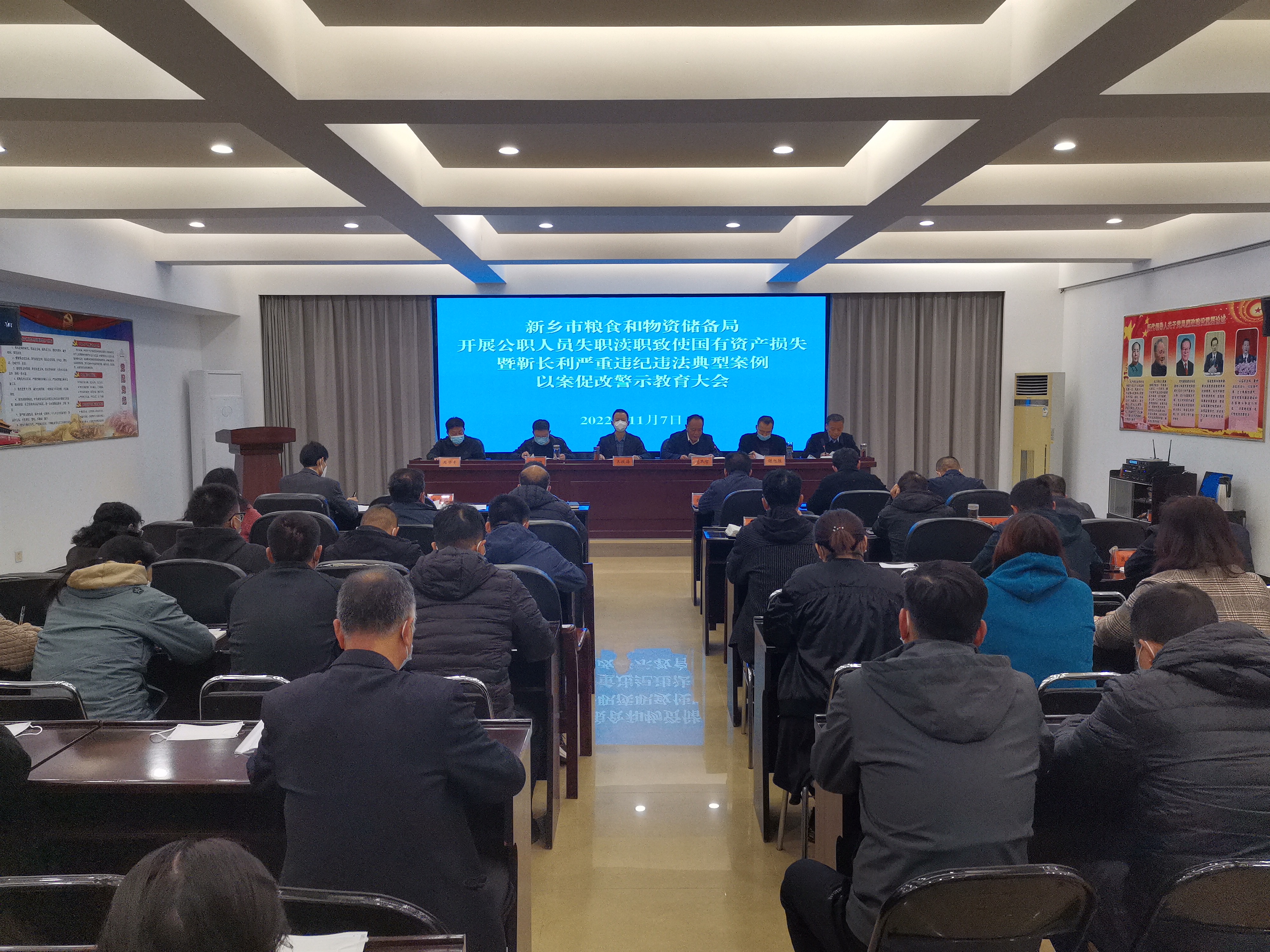 11月7日上午,新乡市粮食和物资储备局召开公职人员失职渎职致使国有资产损失暨靳长利严重违纪违法典型案例以案促改警示教育会议。局领导班子成员、机关全体工作人员、局属单位主要负责同志及分管纪检工作等负责同志参加。