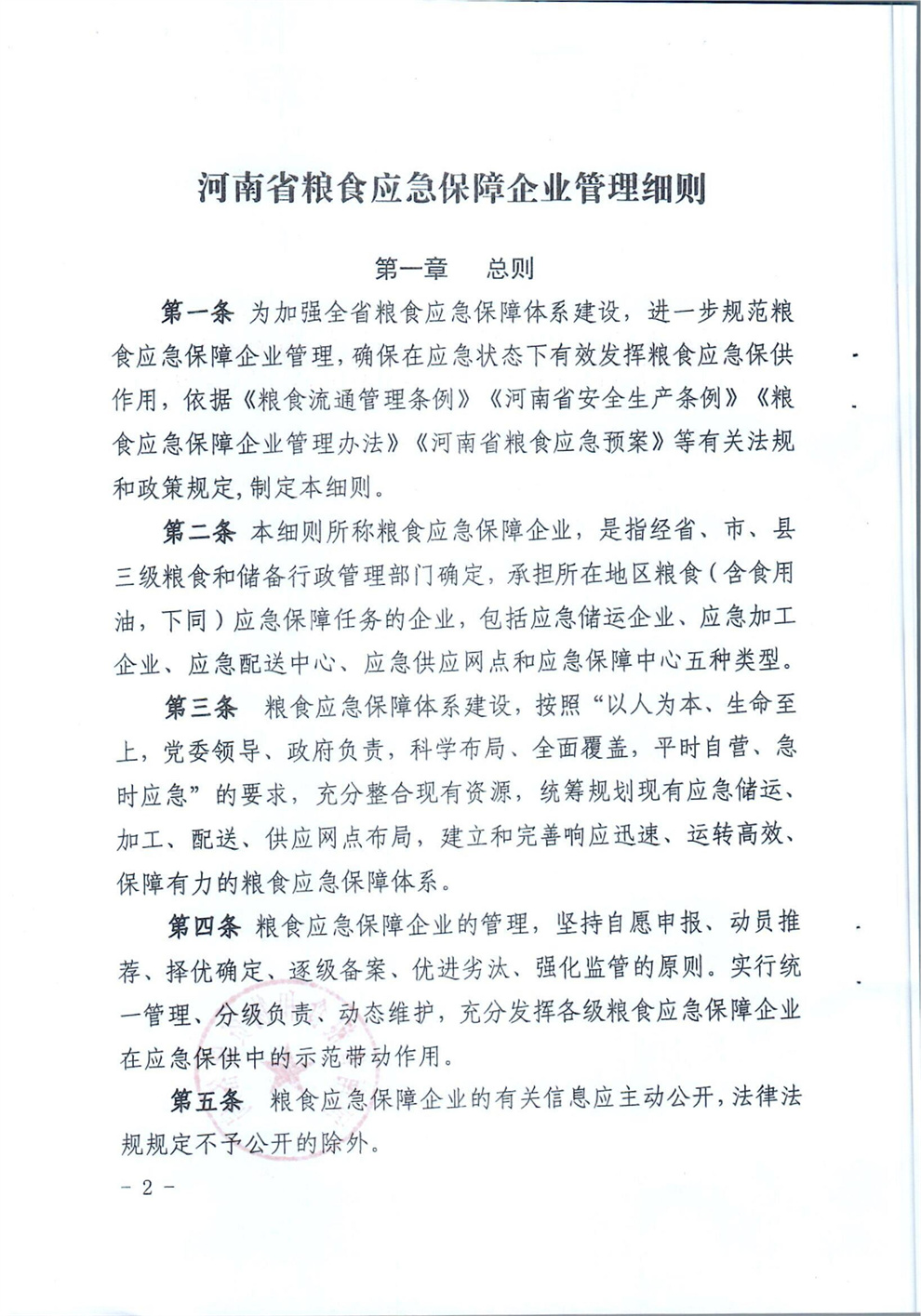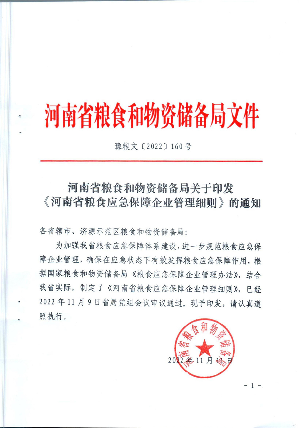 河南省粮食和物资储备局关于印发《河南省粮食应急保障企业管理细则》的通知